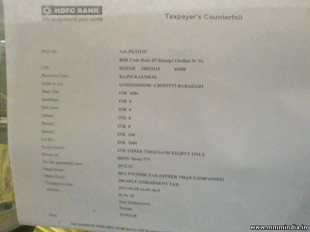 PAID ADVANCE TAX 5000/- ON DATED 28.3.13
