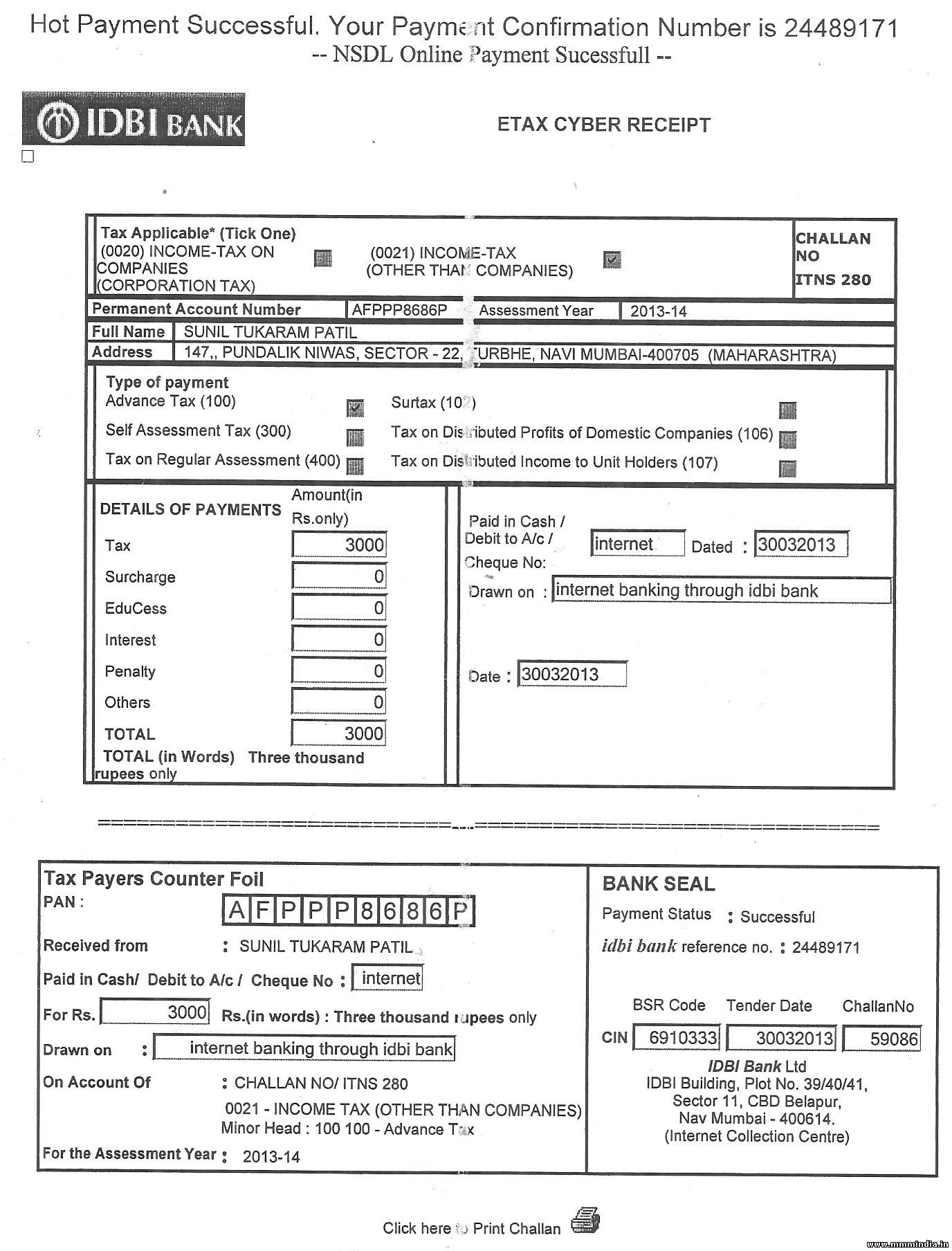 Attached is the payment proof, paid to Income Tax Department Lucknow as an Advance by one of my participant. detail is below.