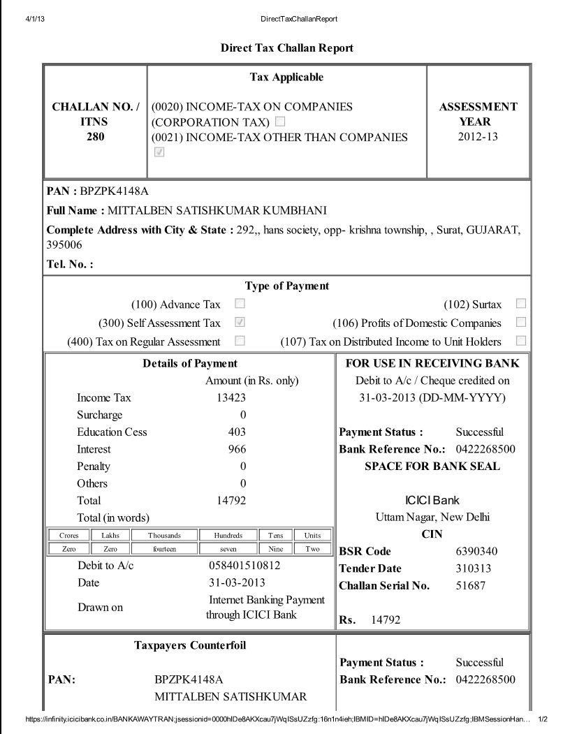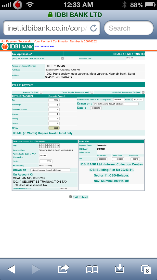 I have already paid the tax amount of 812/- for the financial year 2012-13.