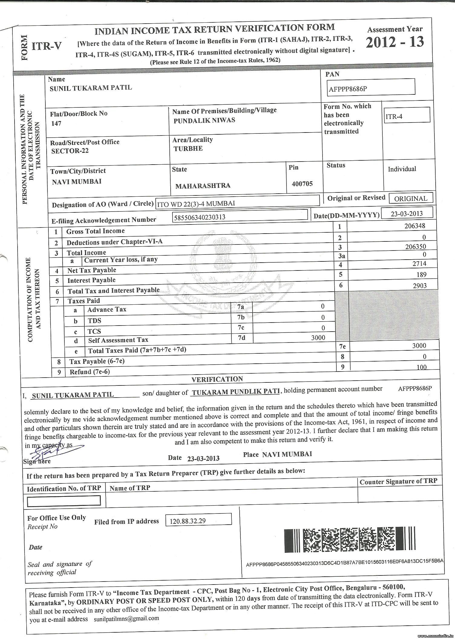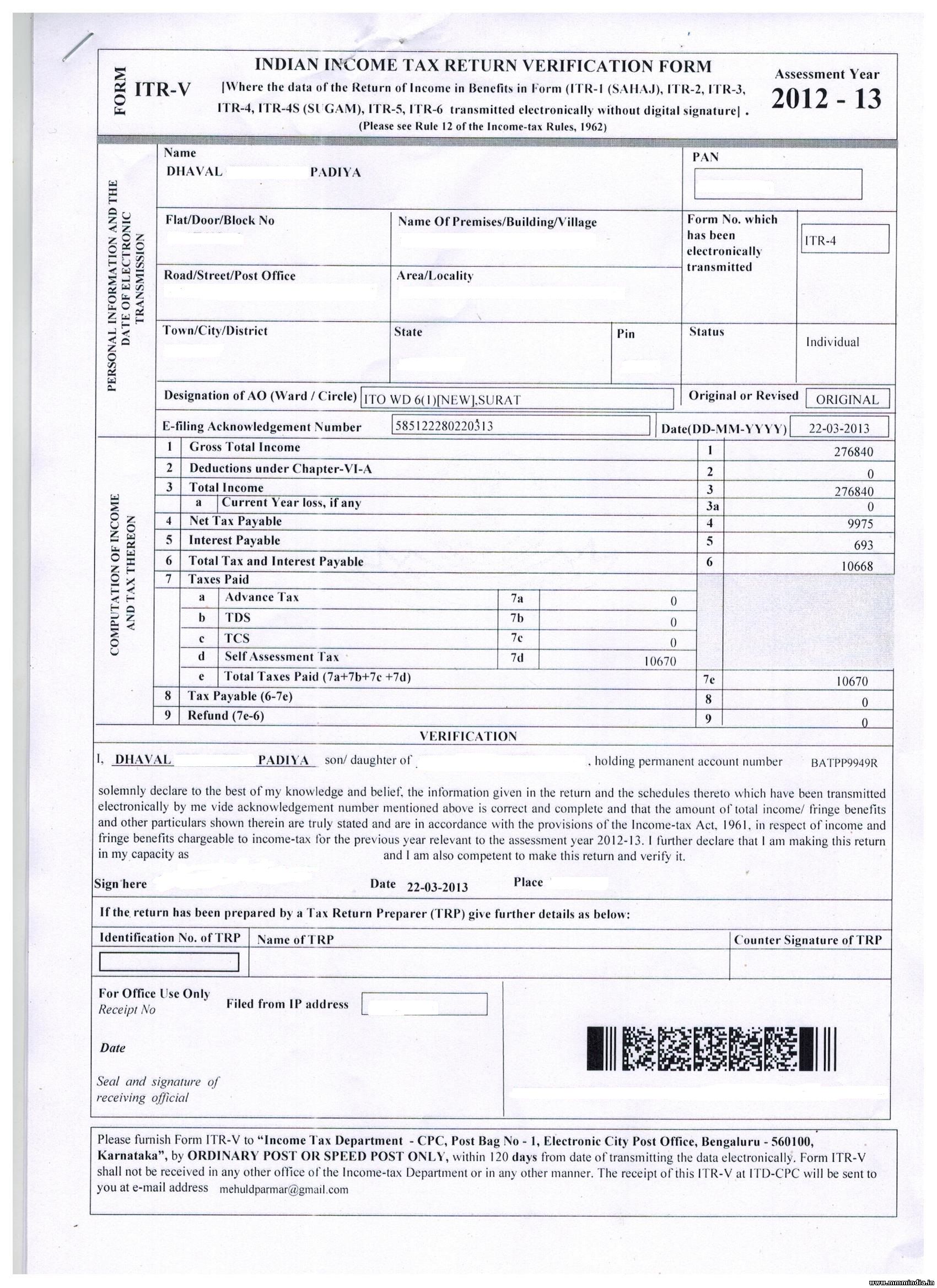 Pls find attached my Advance Tax Receipt and ITRV of Rs. 3,000/- each. Total tax paid is Rs. 6,000/-