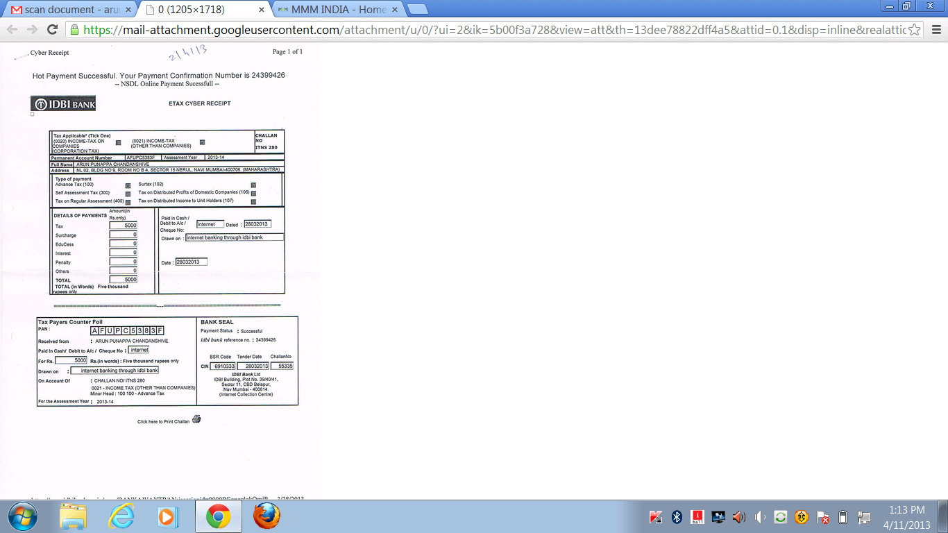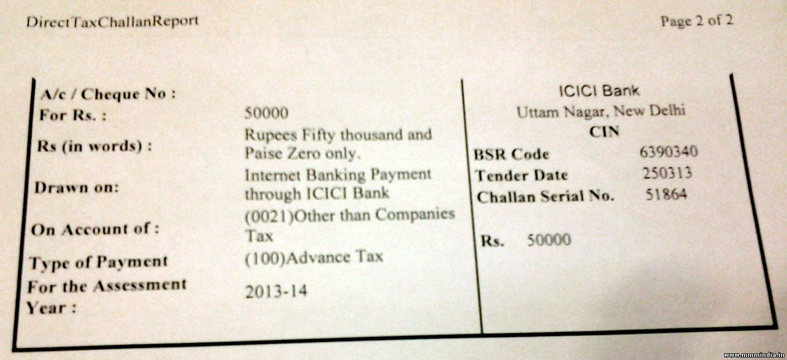 PAID ADVANCE TAX 5000/- ON DATED 28.3.13