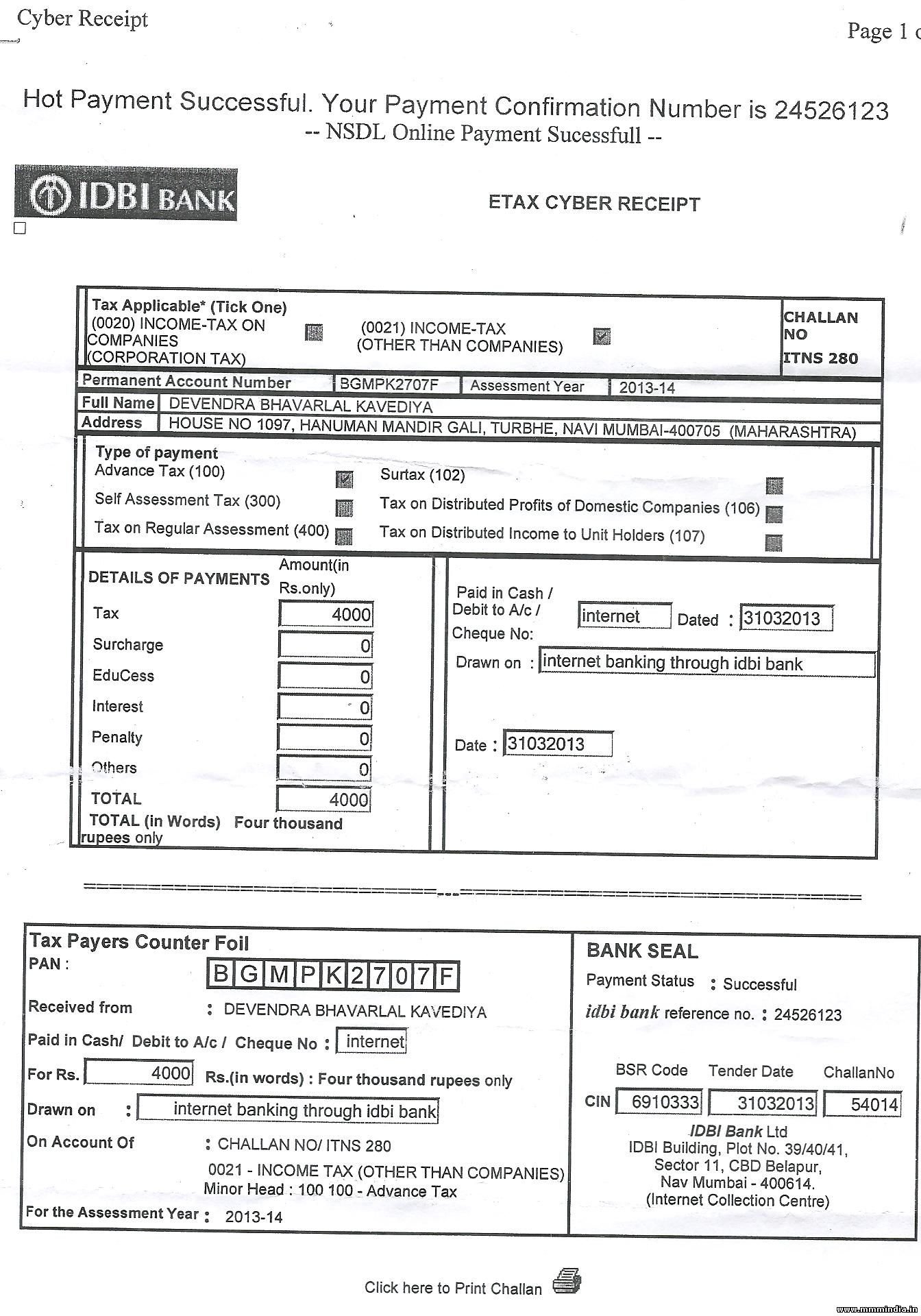Here I attached my advanced tax receipt and also previous tax receipt .