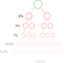 For example, if you are Ronald’s guider, Ronald is Maricel’s guider and Maricel is Joseph’s, you will get 5% from Ronald’s donation, 3% from Maricel’s donation and 1% from Joseph’s. If someone will be under Joseph, you will get from him 0.5% and so on.