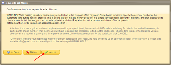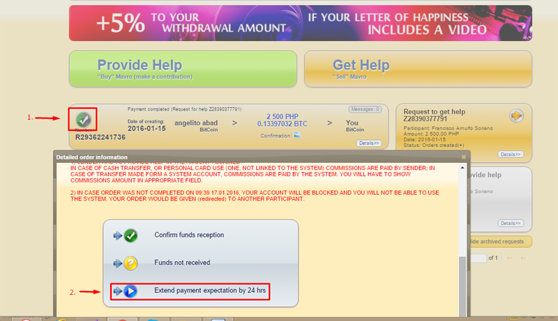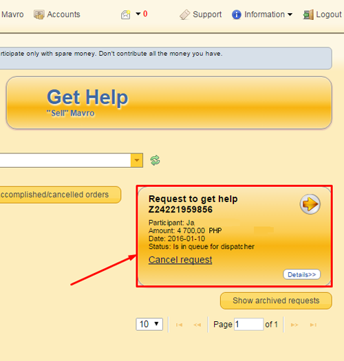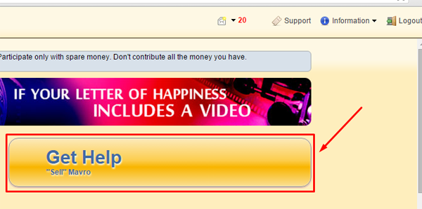 In order to Get Help (“sell” Mavro) click on the appropriate button ("Get Help") on the dashboard of your Personal Office.